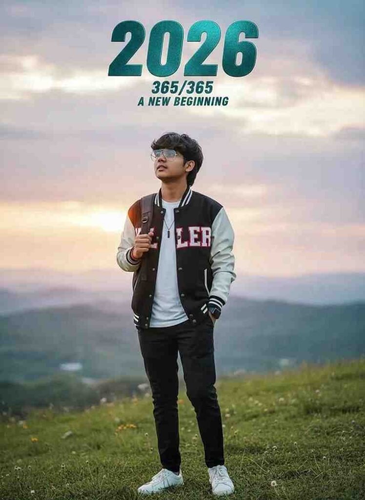 Uploaded girl and boy wearing sunglasses, white and blue batan shirt,blue cargo and left hand black backpack walking confidently across a soft, blurred foreground.The background misty ethereal landscape,dominated by muted teal, blue and light gray tones subject large style text overlay reads "2026" bold, slightly distressed teal font.Smaller text below it says "365/DAYS" and"always together"in top.Cinematic, highly-detailed,soft lighting,style,new year. Camera angle is left sideIn this post i have shared new year prompts which will help you to create HD image from gemini and any Image generation Ai tool.
