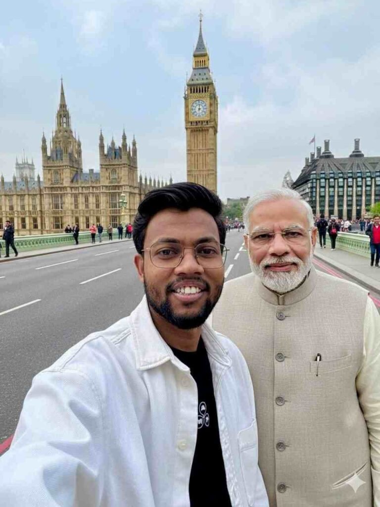 - “Make this photo a selfie with Narendra Modi in front of London Big Ben.”