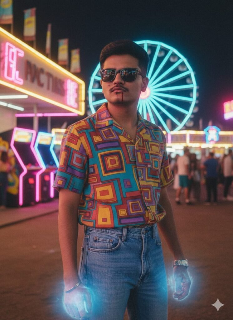 Transform the person in the reference photo into a canonical Stranger Things character while keeping 100% of their real facial features, skin tone, eye shape, hair, expression, and exact age from the photo. Use the official visual style of the show (1980s photography, saturated colors, neon lighting, film grain). Dress them in iconic clothing from Season [insert season], place them in a typical Hawkins or Upside Down background, and add small authentic details like a nosebleed or telekinetic energy if it fits.