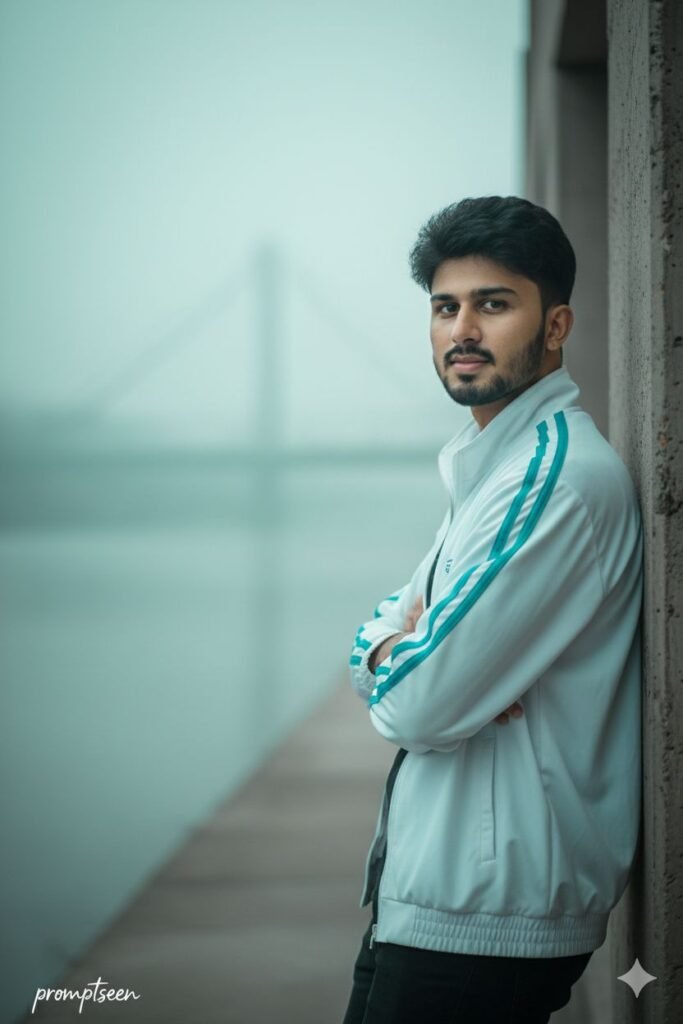 Ultra-realistic cinematic portrait, 8K quality, moody cool-tone color grading with teal and gray shades.